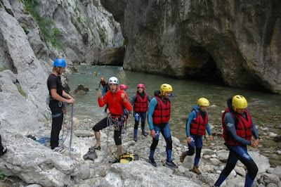 Bien entendu, si vous ne connaissez pas le site et que vous vous fiez au nouveau topo, vous vous embeterez pour l'accès. En fait ça passe très bien en descendant à pieds depuis le premier belvédère vers la couenne de Valaute, puis descendre au plus bas de celle-ci. Deux beaux rappels sur la droite vous posent au bord du torrent. La voie démarre en par une traversée ascendante derriere une grosse écaille au bord de l'eau.